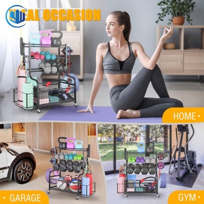 体育用品收纳架瑜伽垫篮球置物哑铃泡沫滚轮运动健身房移动储物架