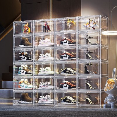 鞋盒收纳盒透明篮球鞋aj网红收纳神器防尘防氧化侧开展示磁吸鞋架